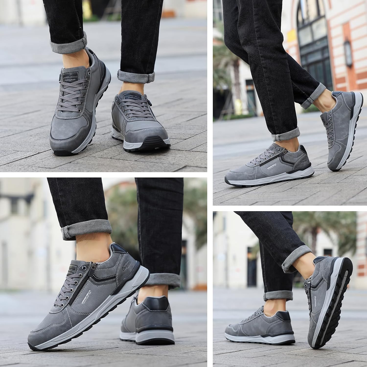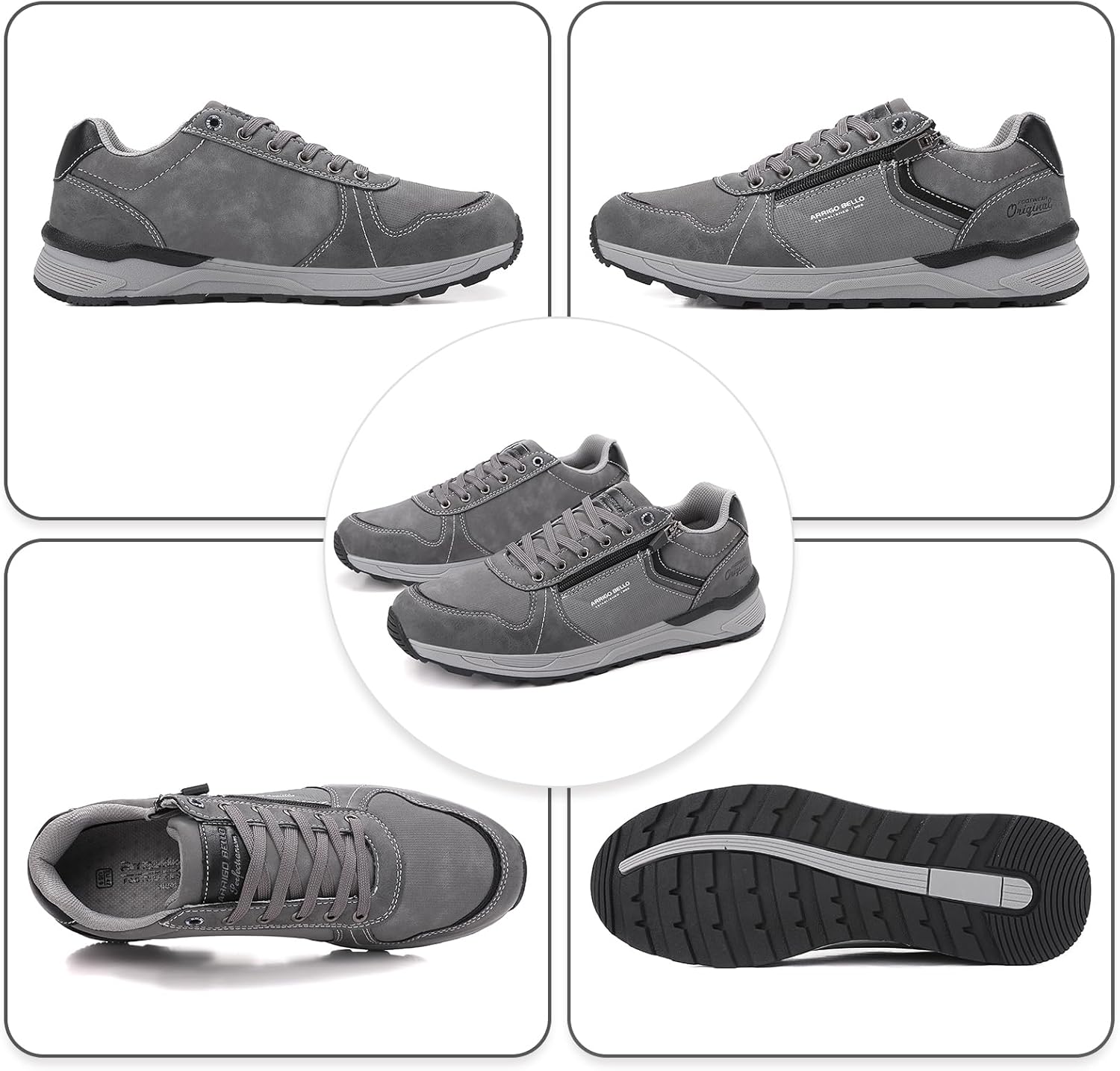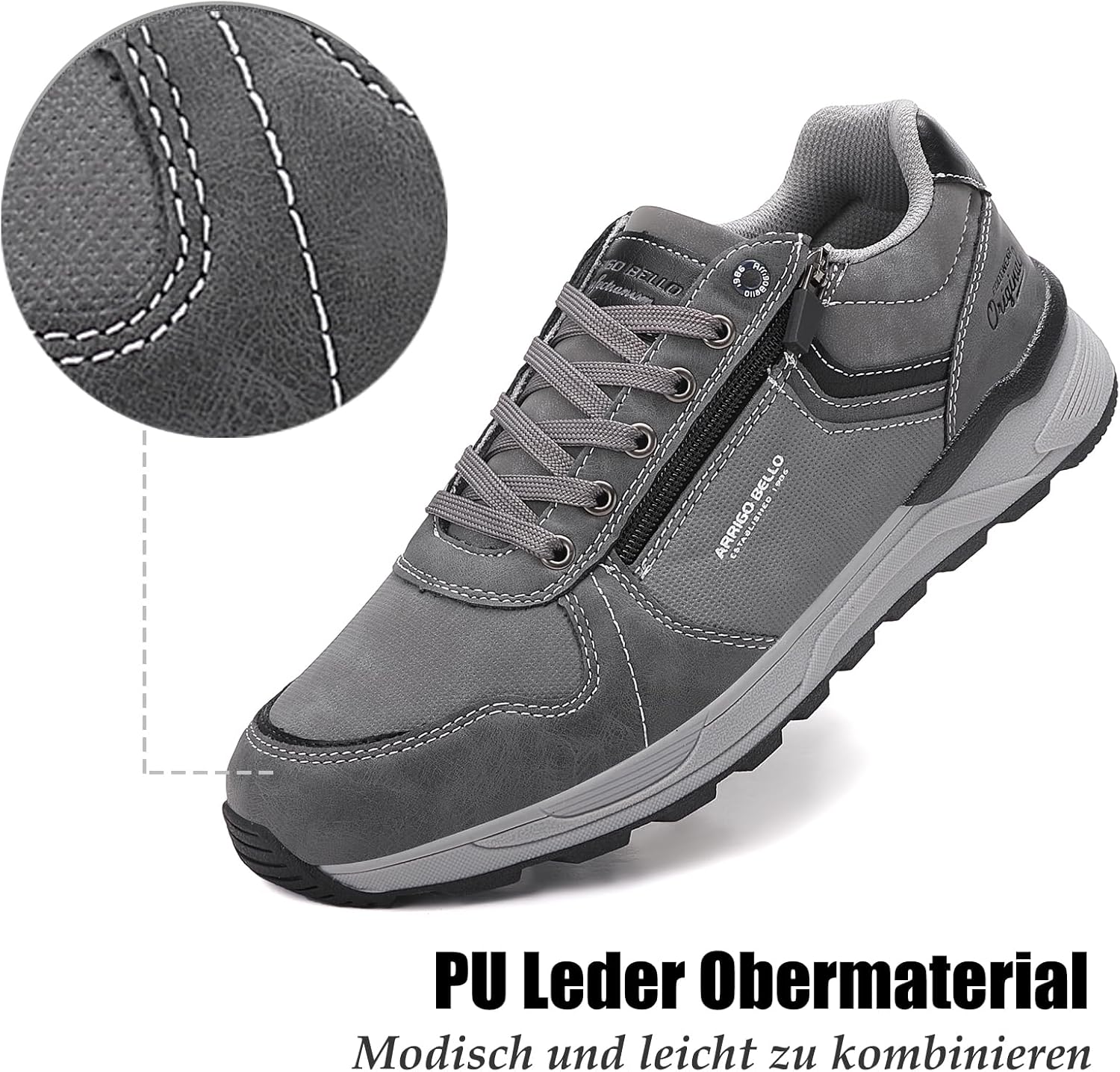 ARRIGOBELLO Freizeitschuhe Herren Schuhe Kunstleder Sneaker Bequem Sportschuhe Reißverschlüsse Walkingschuhe Leichtgewicht Arbeitsschuhe EU41-46