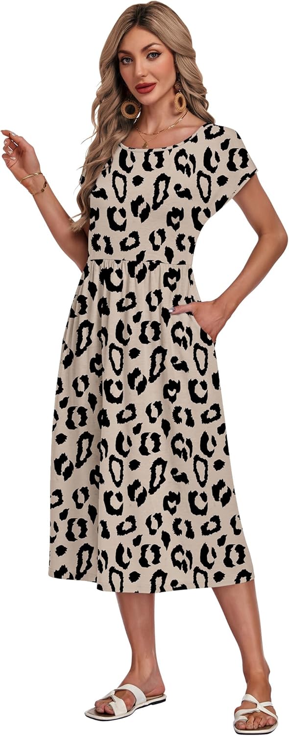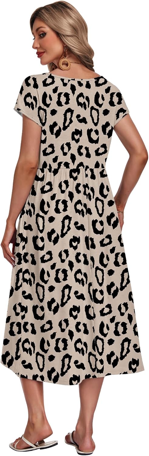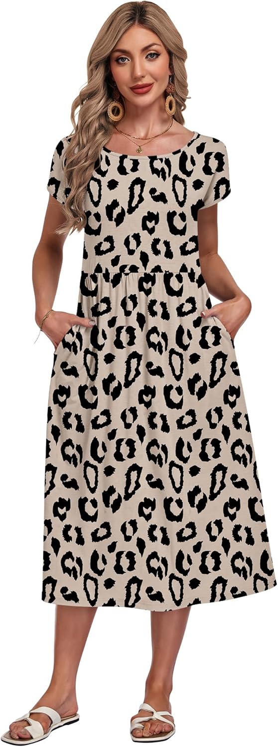 AUSELILY Damen Sommer Kleider Kurzarm Lockeres Midikleider mit Taschen