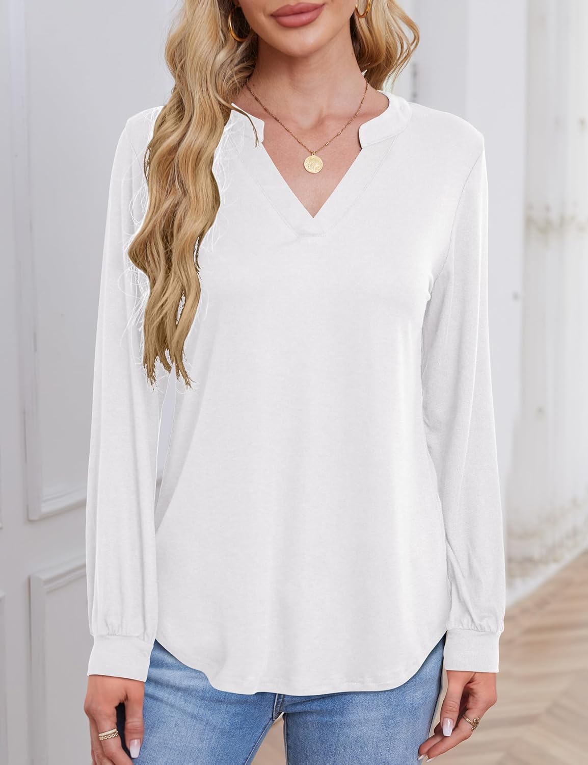 Beluring Langarmshirt Damen Elegant V Ausschnitt Tunika Bluse Einfarbig T-Shirt