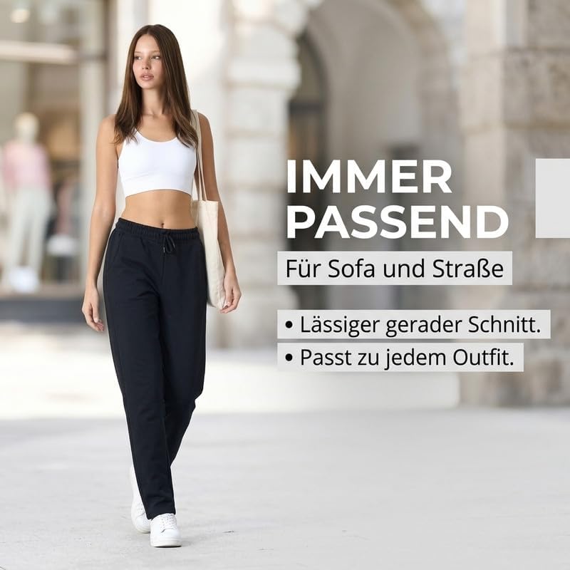 COMEOR Jogginghose Damen-Baumwolle Sporthose Lang – Sweatpants Frauen Freizeithose – Lockere Laufhosen Jogger – High Waist Trainingshose Geradem Bein Hose mit elastischem Bund und Taschen Yogahose