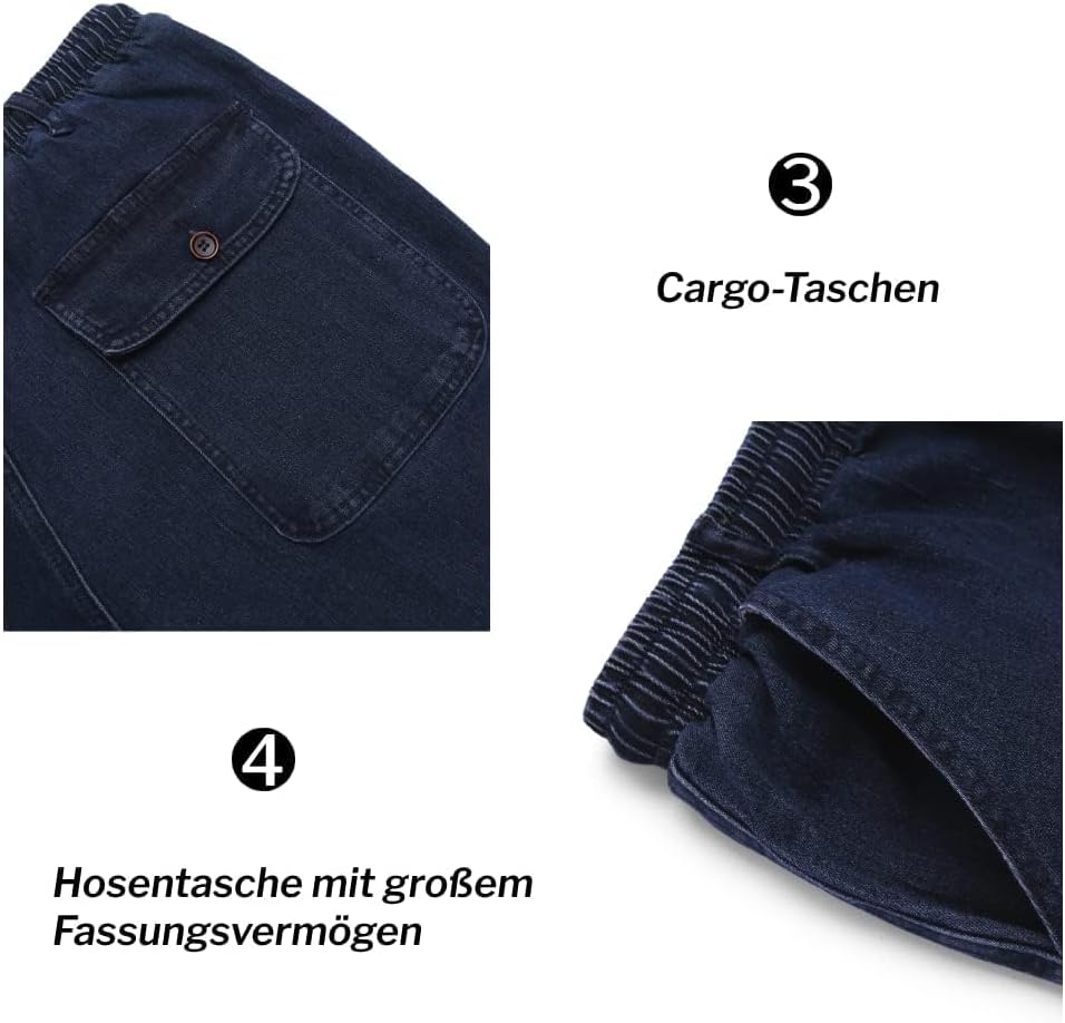 COOFANDY Herren Jeans Straight Jeanshose Stretch Schlupfhose Schlupfjeans Stylische Hose Gummibund mit Kordelzug Cargo-Taschen für Männer