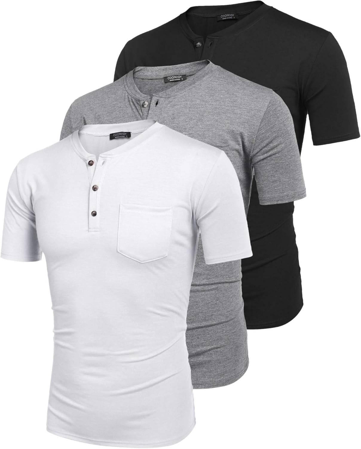 COOFANDY 3er Pack Henley Shirt mit Brusttasche
