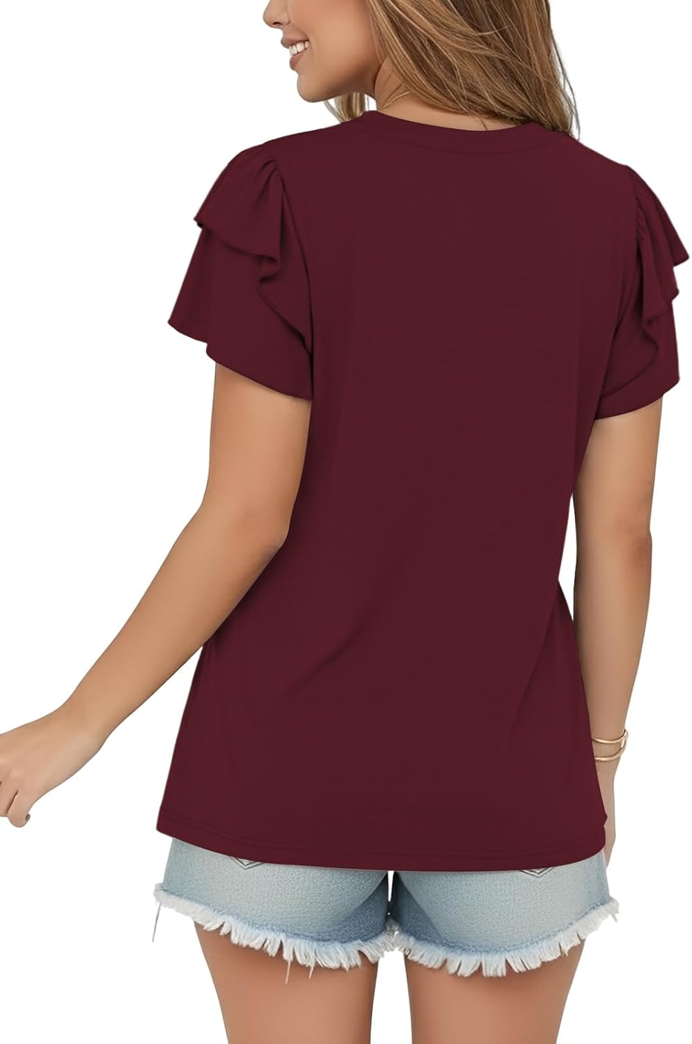 Cuptacc Eleganter Damen Tshirt mit Volant Ärmel für den Sommer