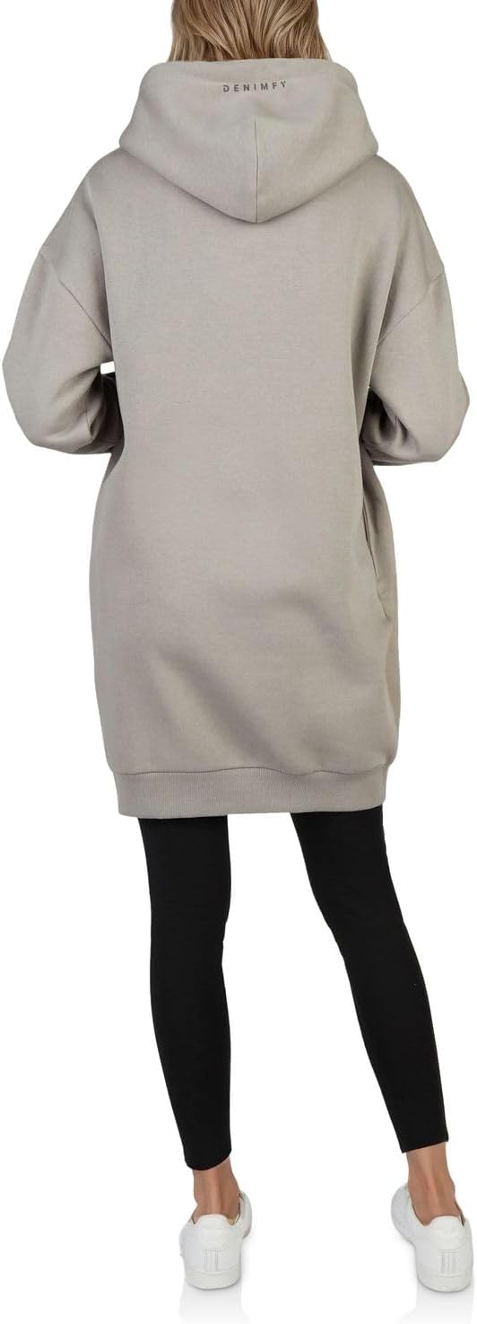 DENIMFY Hoodie Damen lang Oversized DFAnna Kapuzenpullover Pullover Sweatkleid Kapuzenkleid Streetwear Print Beige Schwarz Grün S M L XL XXL 3XL