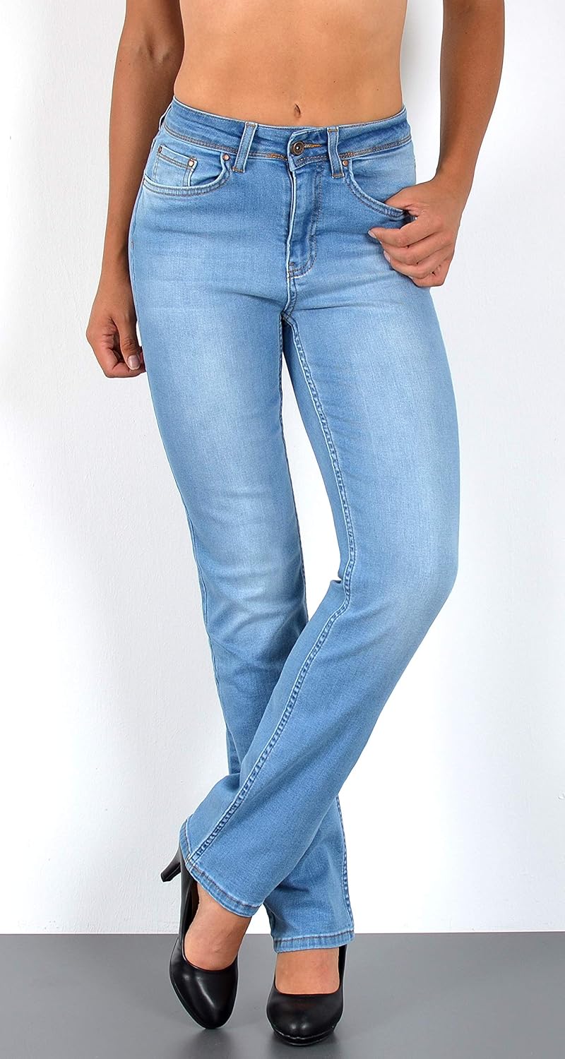ESRA Damen Straight Fit Jeans Hose Damen Jeanshose gerader Schnitt bis Übergröße G700