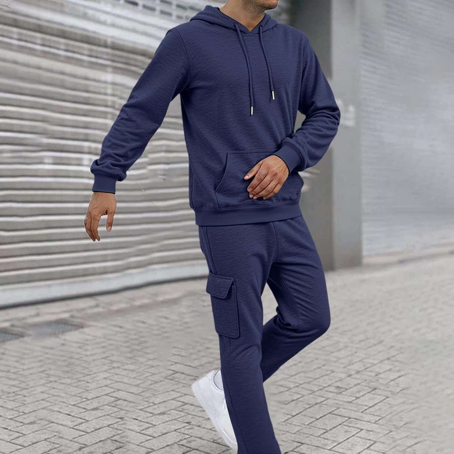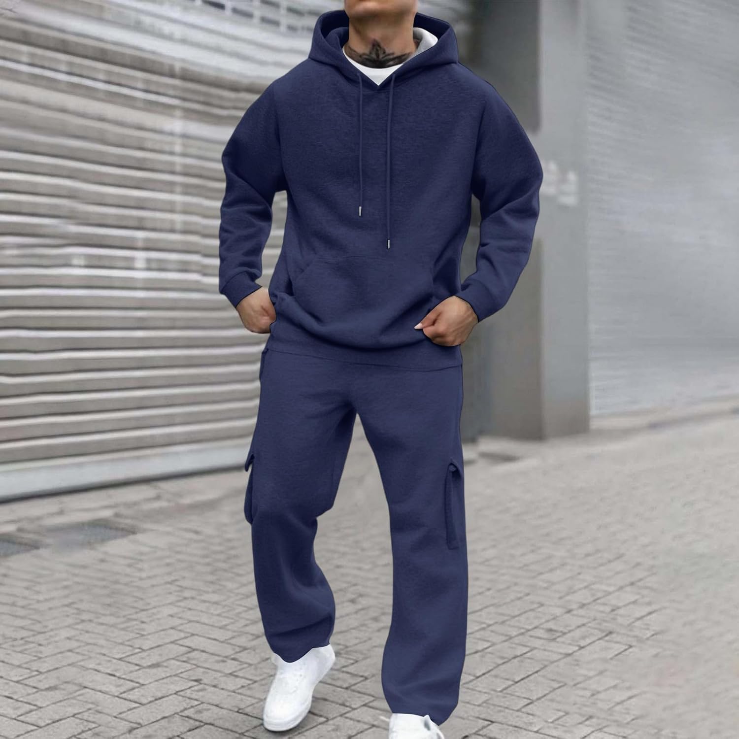 Jogginganzug Herren Einfarbig, Freizeitanzug Herren Laufen Casual, Sweatshirt Mit Kapuze Kordelzug Und Hose ; Trainingsanzüge Mit Tasche Sport – 2 Teiliges Fashion