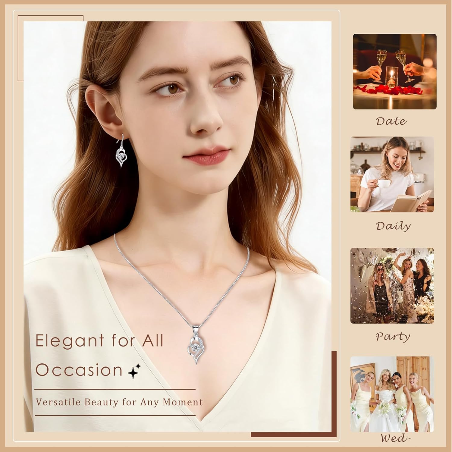 Kamise Schmuck Set Silber, 925 Sterling Silber Herz Silberkette & Hängend Ohrringe Set mit Zirkonia, 45cm Herz Halskette und Ohrhänger für Damen, Romantic Schmuckset mit Geschenkbox