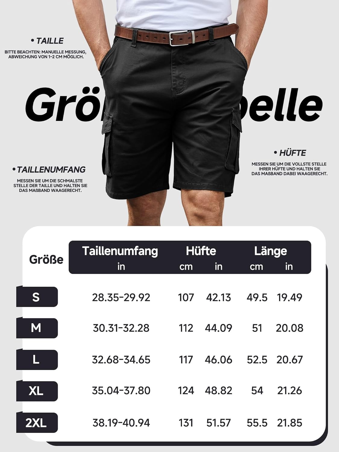 Kurze Hosen Herren Sommer Baumwolle Cargo Shorts Casual Cargohose Herren Kurz mit 6 Taschen