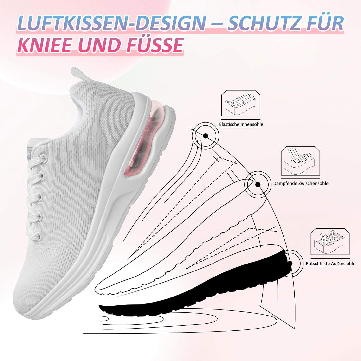 Laufschuhe Damen Turnschuhe Sportschuhe Damen Sneaker Luftpolster Stoßdämpfend Joggingschuhe Orthopädische Schuhe Leichte rutschfest Hallen Fitnessschuhe Atmungsaktiv Walkingschuhe Womens Trainers