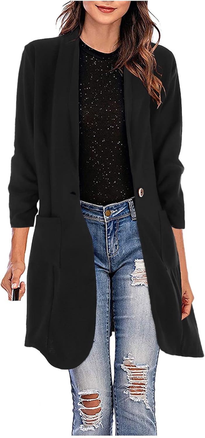 Longblazer Damen Business Revers Blazer Jacke Sakko Leicht Langarm Arbeit Büro Jacken Blazerjacke Modern Elegant Anzugjacke Damenblazer Cardigan Knopf Open Front Lang Mantel