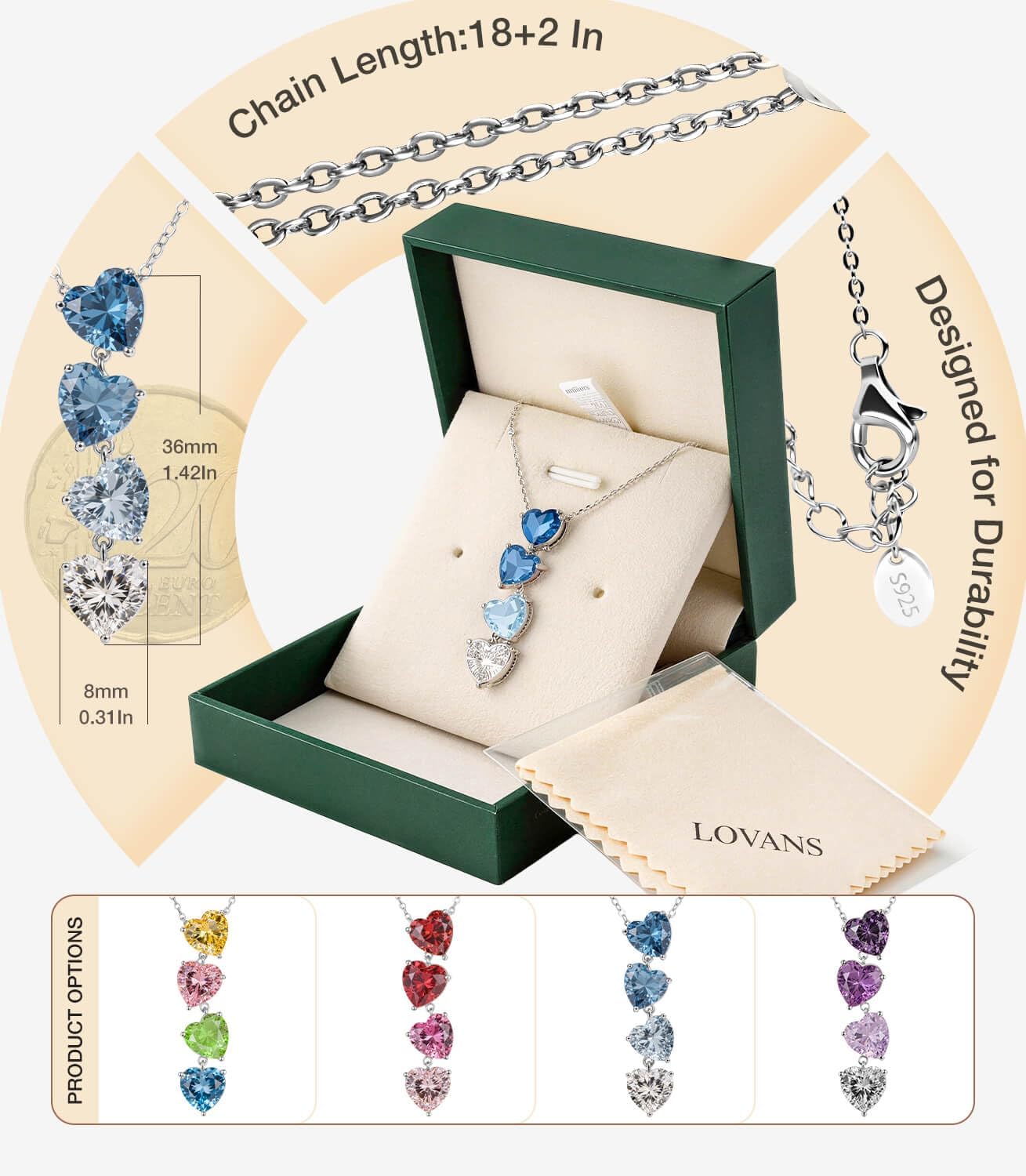 LOVANS Heart Necklace 925 Silver Women’s Necklace Y Silver Chain with Pendant with 5A Cubic Zirconia, Valentine’s Day Gifts for Women Gift Girlfriend Birthday