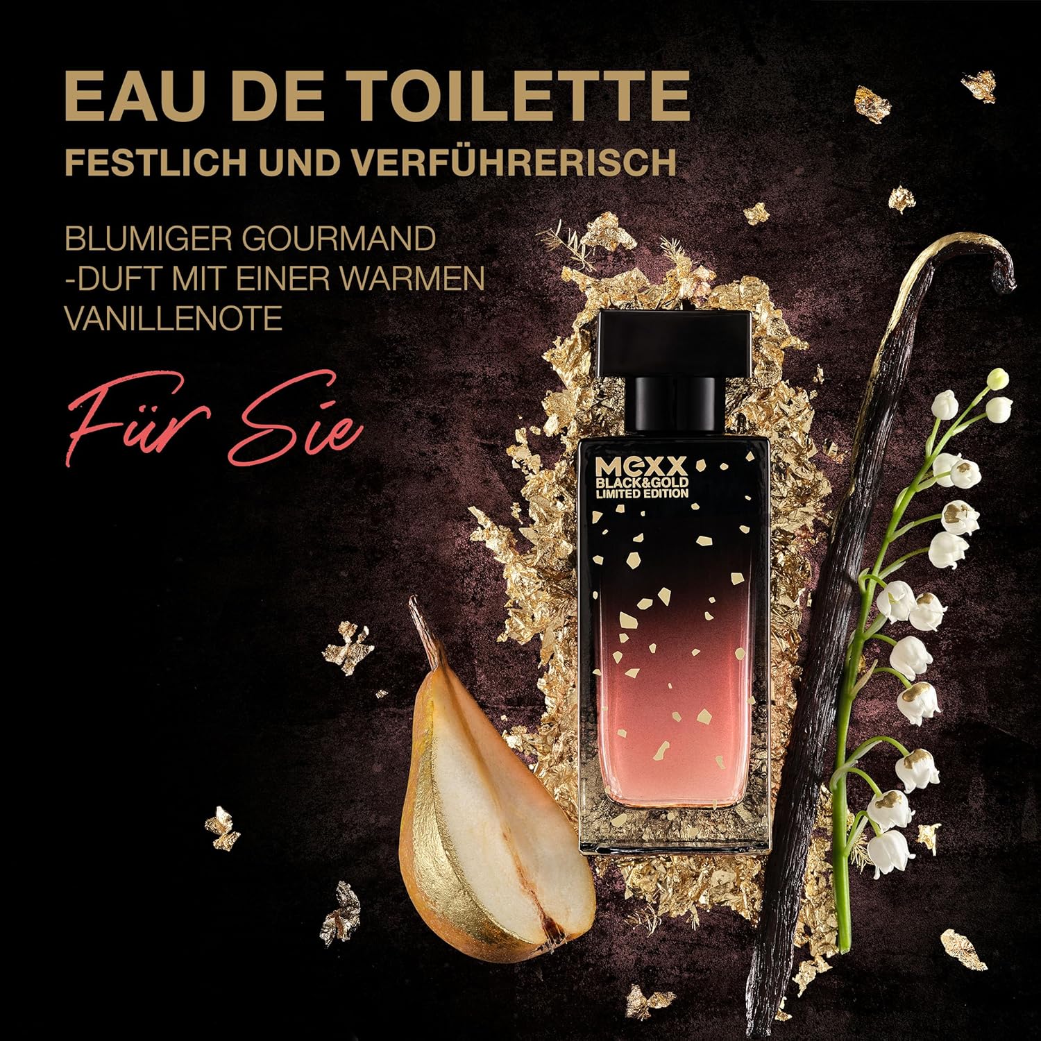 Mexx Black & Gold Limited Edition Woman Eau de Toilette, sinnlich-blumiger Damenduft, 30ml