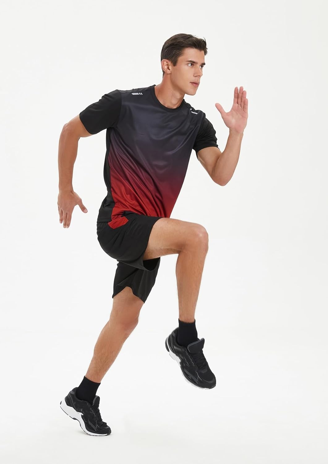 Trainingsanzug Herren 2 Teiler Sommer Jogginganzug Schnelltrocknend Funktionsshirt Atmungsaktiv Sportanzug Farbver Sport Tshirt&Kurze Hosen Set Bequeme Männer Tracksuit für Lauf Gym