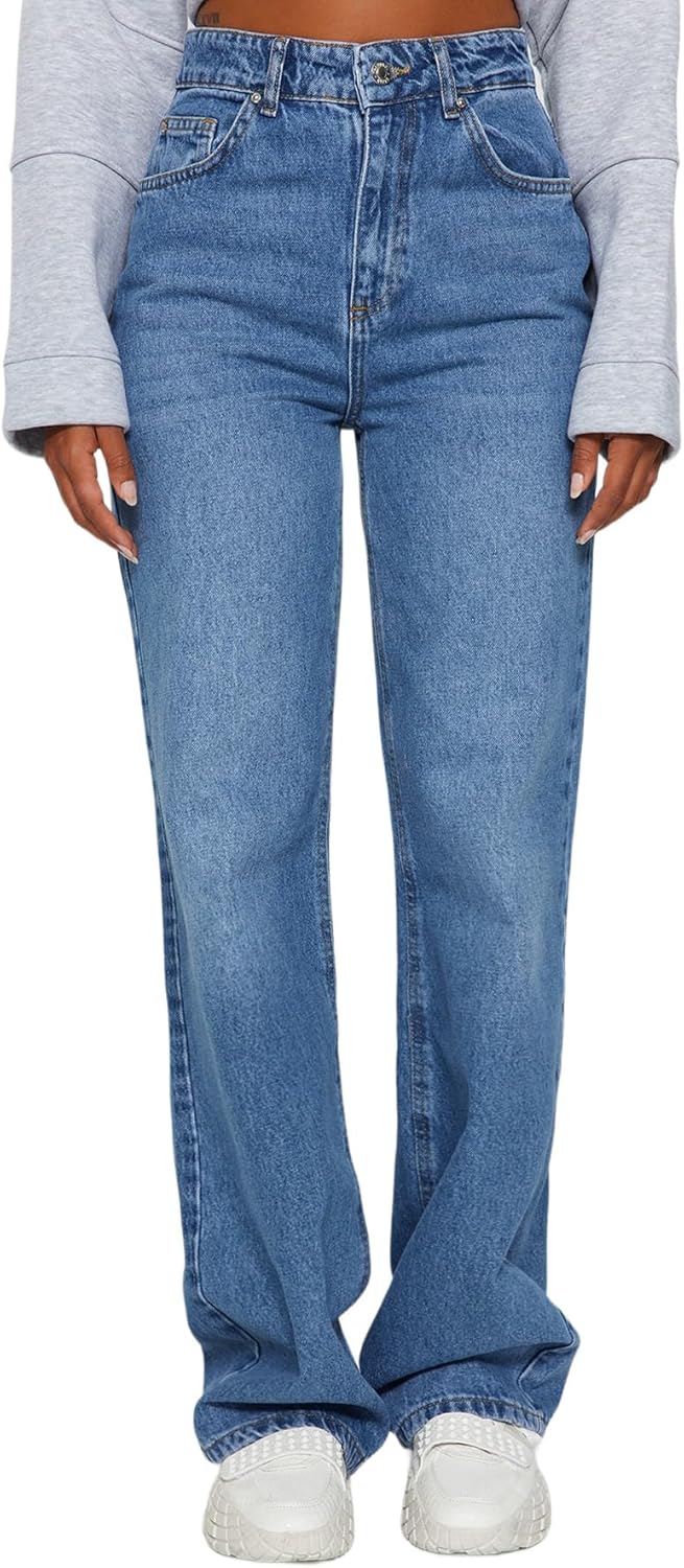 TRENDYOL Damen Jeans Trendyol Damen Gerade Weites Bein Hohe Taille Jeans