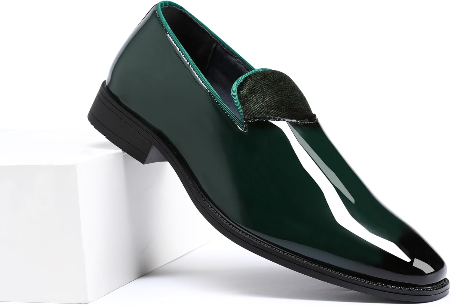 YFFUSHI Herren Loafer Glänzendem Lackleder Business Schuhe Runde Zehenpartie Mokassin Slip-on Hochzeit Mode Anzugschuhe